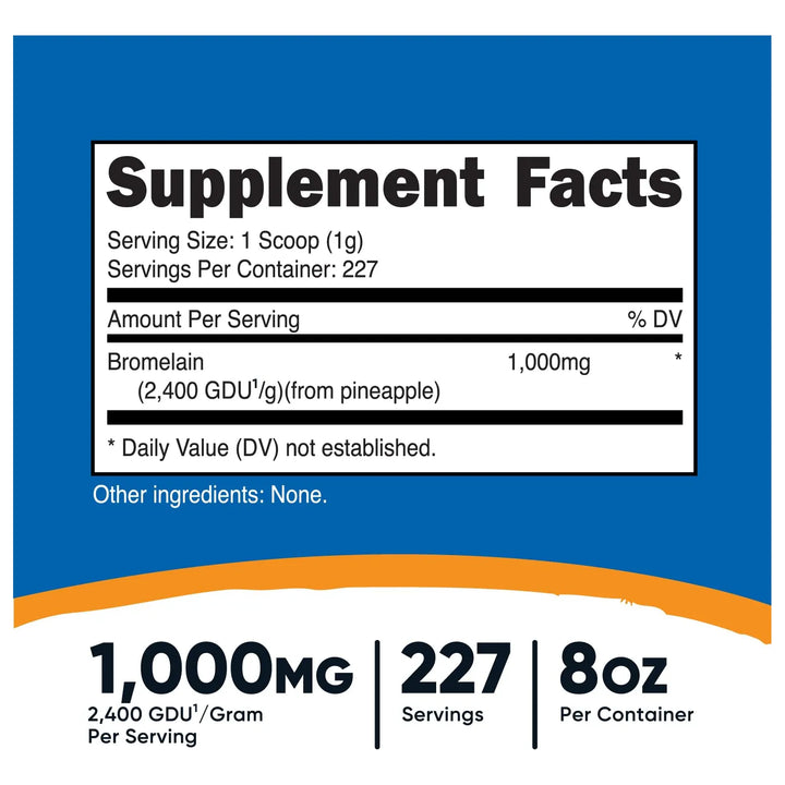 Este no es un suplemento cualquiera. La Bromelina en polvo de Nutricost está formulada para ofrecerte 1,000 mg por porción, garantizando que recibas la dosis óptima para apoyar tu salud digestiva. Además, al ser sin OMG, vegetariana y sin gluten, es perfecta para cualquier estilo de vida. ¿Lo mejor? Puedes personalizar tu consumo con las dos opciones de tamaño disponibles (4 oz y 8 oz), adaptándose a tus necesidades específicas. No dejes que las molestias digestivas controlen tu vida. Toma el control con un producto que combina calidad, pureza y efectividad.