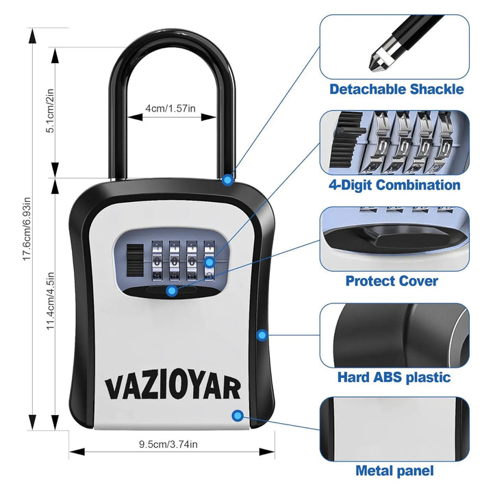 ¿Sabías que el 20% de los robos en hogares ocurren por llaves perdidas o mal guardadas? Esta caja de bloqueo, importada de Estados Unidos, está diseñada con una combinación de 4 dígitos que solo tú conoces. Con 10,000 opciones únicas, la seguridad está garantizada. Olvídate de esconder llaves bajo el felpudo o en macetas, soluciones obsoletas que cualquiera puede descubrir.
