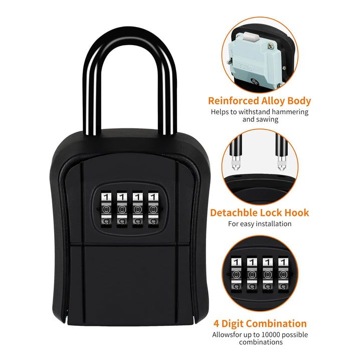 Esta caja de bloqueo transforma tu rutina al ofrecer un acceso seguro y rápido a tus llaves. Simplemente configura tu código personalizado, coloca las llaves dentro y ciérrala. Cuando necesites entrar, marca tu combinación y listo. ¡Sin llaves perdidas ni esperas!