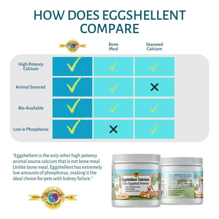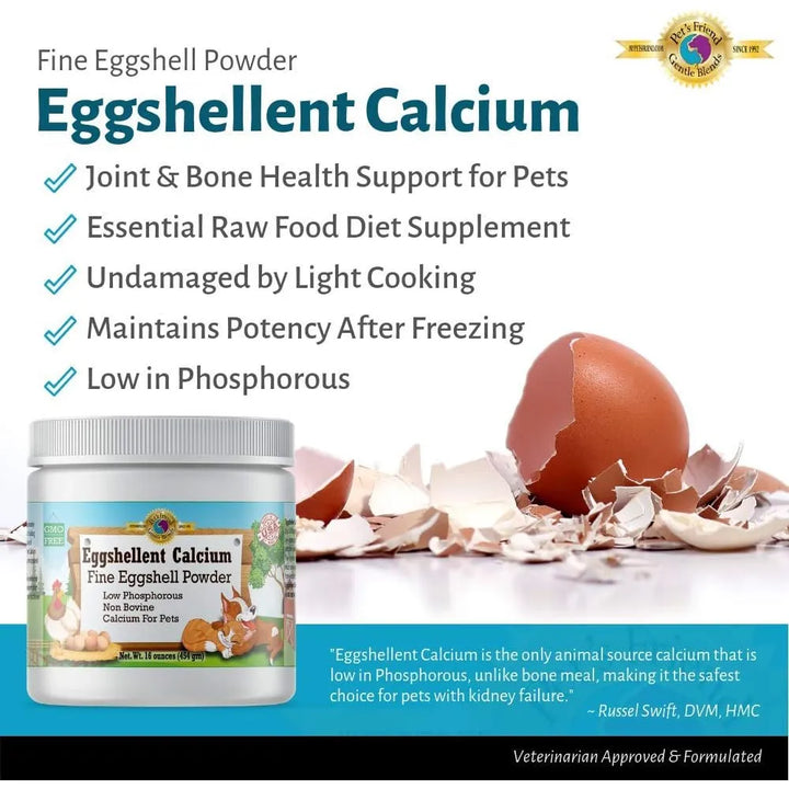 El calcio de cáscara de huevo se absorbe rápidamente en el organismo de tu mascota, proporcionando los nutrientes necesarios para mantener su estructura ósea en óptimas condiciones. Al ser molido hasta obtener una textura ultra fina, garantiza una digestión fácil y eficiente.