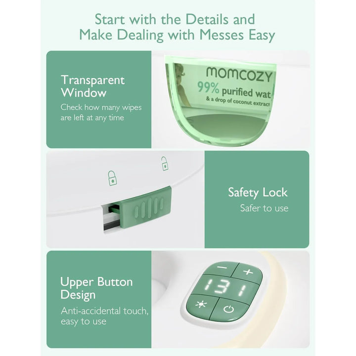 Imagina poder limpiar a tu bebé con toallitas cálidas y reconfortantes en cualquier momento del día, incluso en medio de la noche. El calentador de toallitas Momcozy no solo ahorra tiempo, sino que también brinda comodidad y tranquilidad a tu rutina diaria. Con su diseño innovador y funcionalidades avanzadas, este producto está diseñado para hacer tu vida más fácil mientras cuidas de tu pequeño.