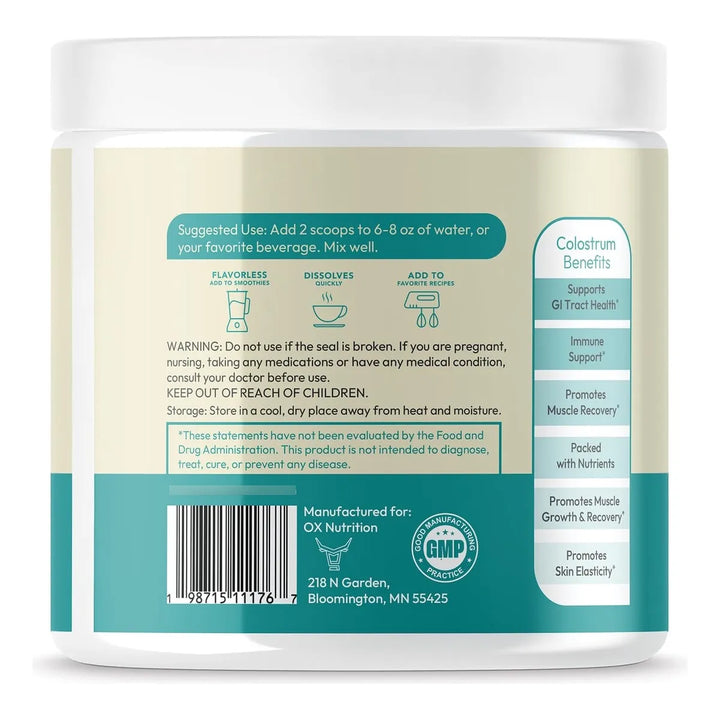 El calostro bovino de OXNUTRITION actúa directamente sobre tu sistema inmunológico, proporcionando los nutrientes necesarios para fortalecer tus defensas. Sus factores de crecimiento apoyan la reparación de tejidos y la recuperación muscular, mientras que sus componentes bioactivos promueven una salud intestinal óptima. Para usarlo, simplemente añade 2 cucharadas a 6-8 oz de agua o tu bebida favorita y mezcla bien. Consumirlo diariamente te ayudará a notar cambios significativos en tu energía, salud y bienestar general.