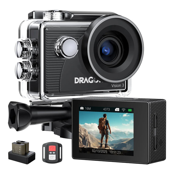 El control remoto inalámbrico incluido te permite manejar la cámara desde tu muñeca, sin importar dónde la hayas montado. Olvídate de perder esos instantes únicos porque no podías alcanzar el botón de grabación. Con la Dragon Touch, estarás siempre listo para capturar la emoción del momento.