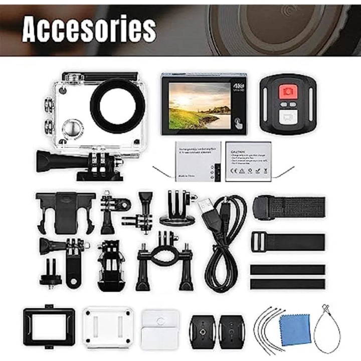 La cámara utiliza tecnología avanzada para grabar videos en 4K a 60FPS, garantizando una calidad profesional. Su lente ultra gran angular de 170° captura más escena, mientras que el EIS elimina las vibraciones para videos suaves. La carcasa impermeable protege la cámara en ambientes acuáticos, y el control remoto inalámbrico te permite manejar la cámara sin tocarla.