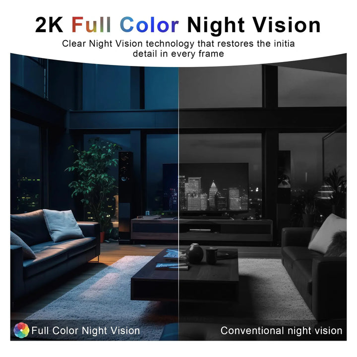 - 🌙 Visión nocturna a color HD 2K que te permite ver claramente incluso en la oscuridad más absoluta.