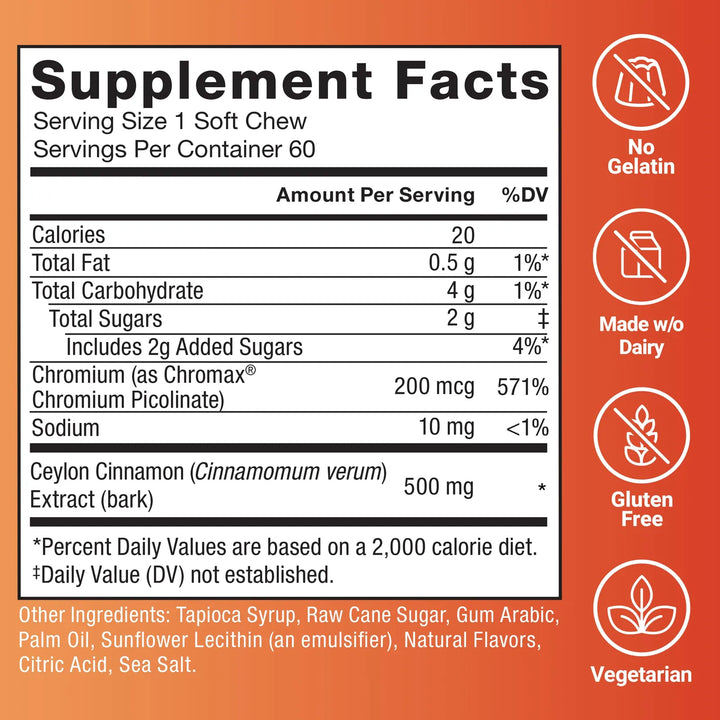 - Formulado con canela de Ceilán real y cromo Chromax para un metabolismo más eficiente 🌟