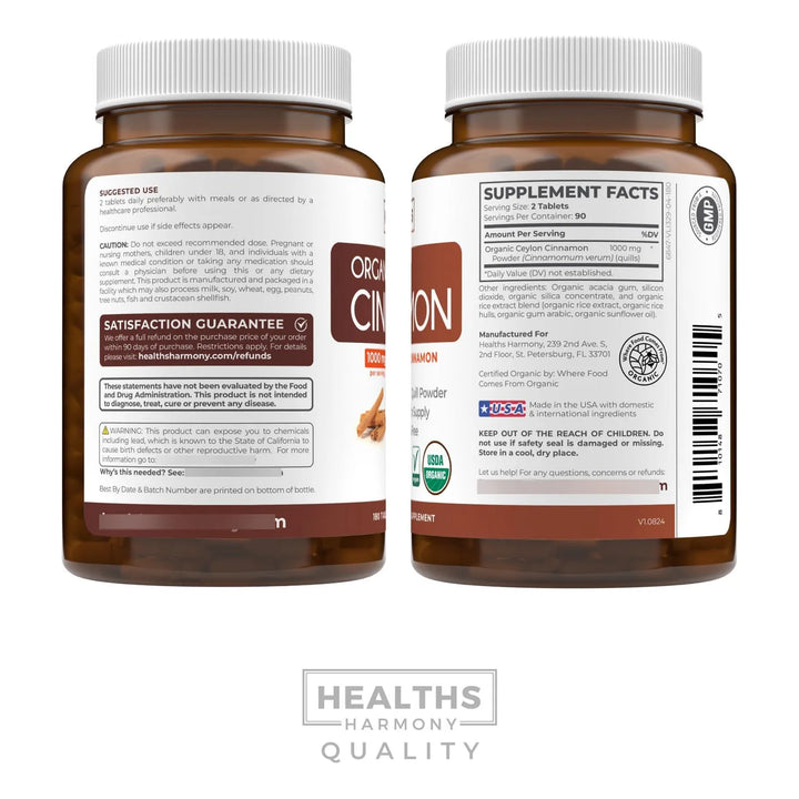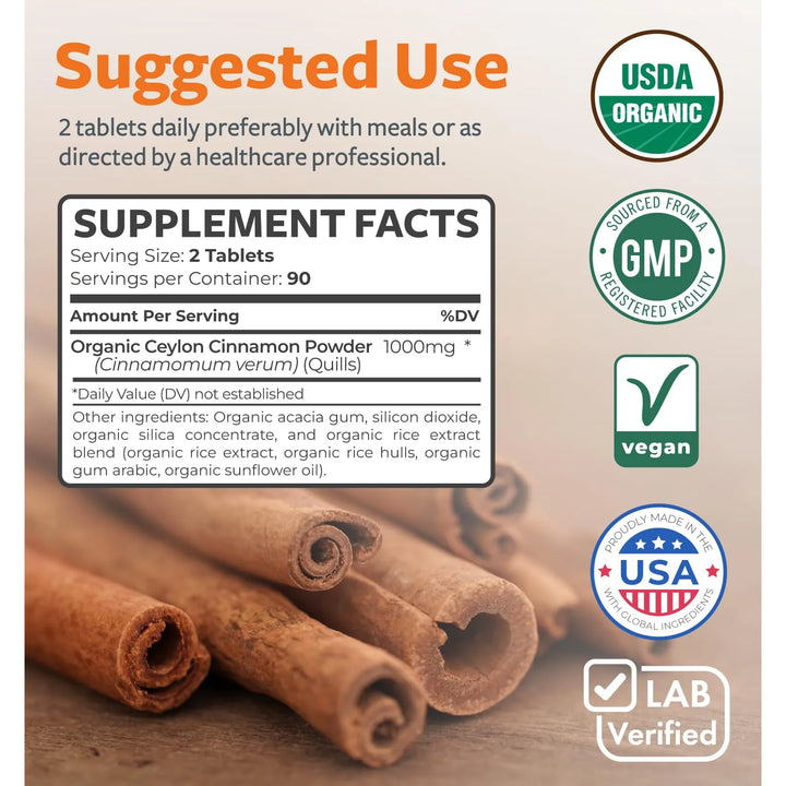 Canela Orgánica De Ceilán 180 Tabletas 1000 Mg – Potencia y Pureza en Cada Dosis