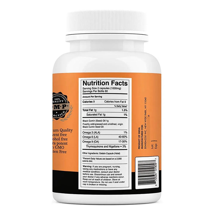 Imagina un suplemento que no solo apoya tu salud digestiva, sino que también te brinda antioxidantes esenciales para tu bienestar diario. Nuestras cápsulas de aceite de semilla negra pura, prensadas en frío y sin OMG, son la solución que tu cuerpo necesita. Con 1000 mg por porción y 120 cápsulas, este producto es tu aliado perfecto para una vida más saludable.