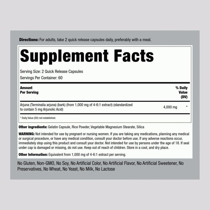 ¿Te sientes cansado después de un día normal? ¿O quizás buscas una alternativa natural para complementar tu estilo de vida saludable? Las cápsulas de Arjuna no solo ofrecen una dosis potente de 4000 mg por porción, sino que también están libres de OMG y gluten, asegurando que estás consumiendo un producto puro, seguro y respaldado por pruebas de laboratorio. No es solo un suplemento, es una inversión en tu bienestar a largo plazo.
