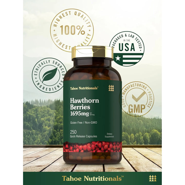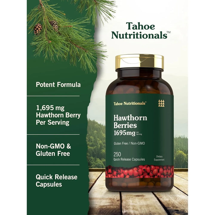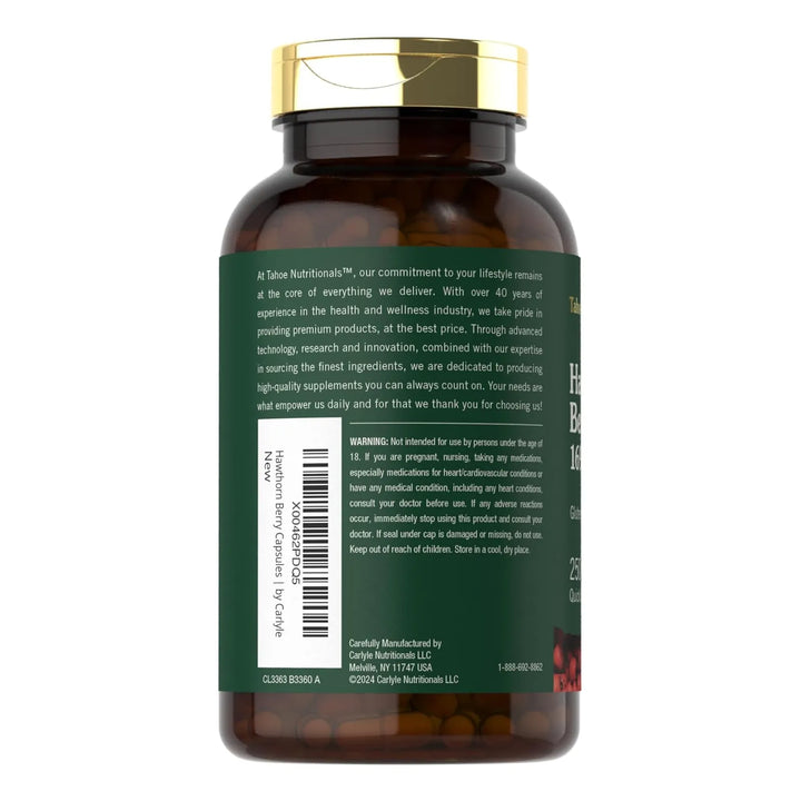 Imagina tener acceso a un suplemento que no solo nutre tu cuerpo, sino que también te ayuda a mantener un equilibrio natural. Las Cápsulas de Bayas de Espino 1695 mg de Tahoe Nutritionals están diseñadas para ofrecerte lo mejor de la naturaleza en cada dosis. Con 250 cápsulas por envase, este producto es tu aliado perfecto para una vida saludable y llena de energía.