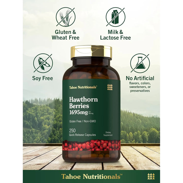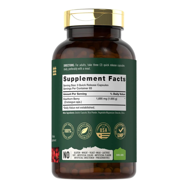 ¿Te preocupa la calidad de los suplementos que consumes? Estas cápsulas están libres de OMG, gluten y otros ingredientes artificiales, garantizando una fórmula pura y efectiva. Cada porción te brinda 1,695 mg de extracto de baya de espino, un ingrediente conocido por sus propiedades beneficiosas para el bienestar general.