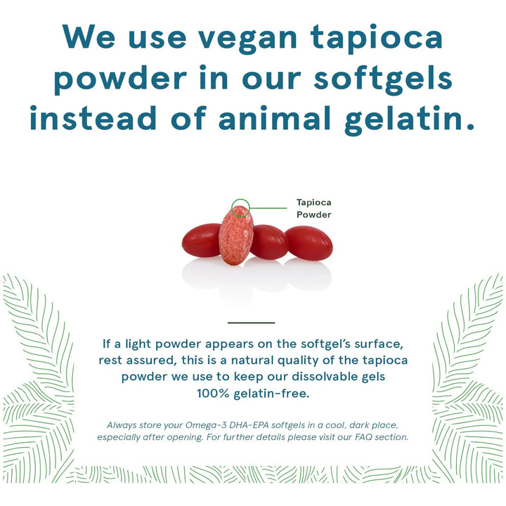 ¿Estás buscando un suplemento de Omega-3 puro, vegano y libre de ingredientes dañinos? Descubre las cápsulas blandas de Omega-3 DHA EPA, diseñadas para cuidar tu salud y bienestar sin comprometer tus valores. Este producto no solo es 100% vegetal, sino que también está libre de carragenina, gelatina y otros derivados animales, haciéndolo perfecto para veganos y vegetarianos que desean mantener una dieta limpia y sostenible.