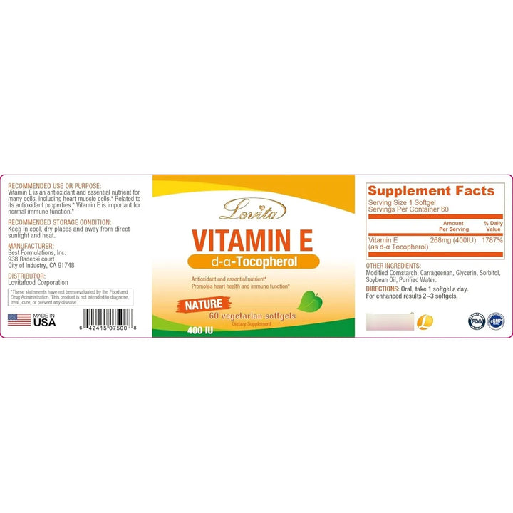 ¿Sueñas con una piel radiante, un cabello fuerte y un sistema inmunológico robusto? Las cápsulas blandas de Vitamina E 400 UI de Lovita son tu solución natural. Diseñadas para quienes buscan un suplemento vegano, puro y altamente biodisponible, esta fórmula premium te ofrece los beneficios de la vitamina E en su forma más efectiva.