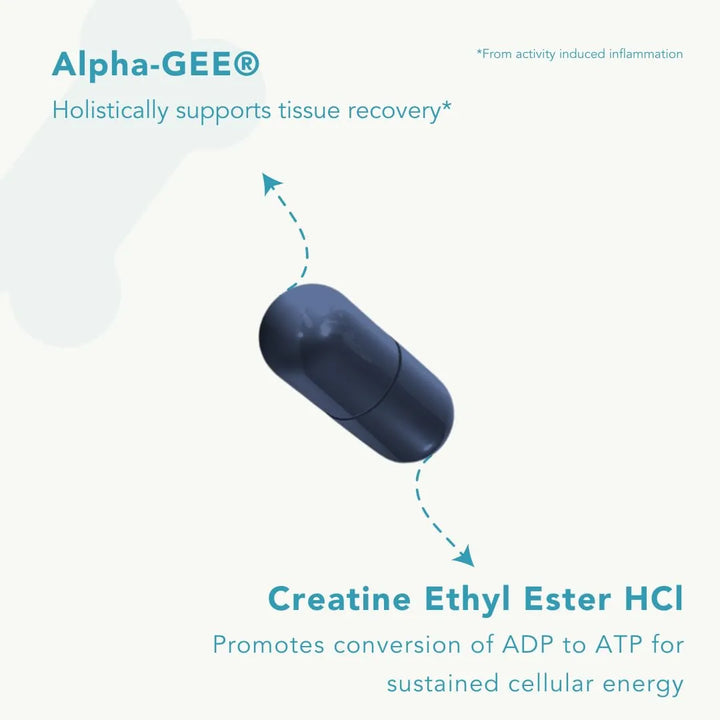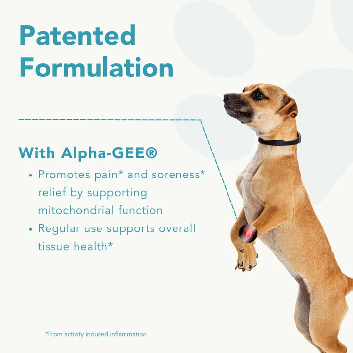 - AlphaGee patentado: El único suplemento con este péptido natural que acelera la recuperación articular 🐾