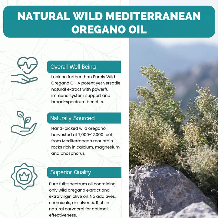- 🌿 Orégano Silvestre de Montaña: Cosechado a mano en regiones vírgenes para una potencia máxima y pureza incomparable.