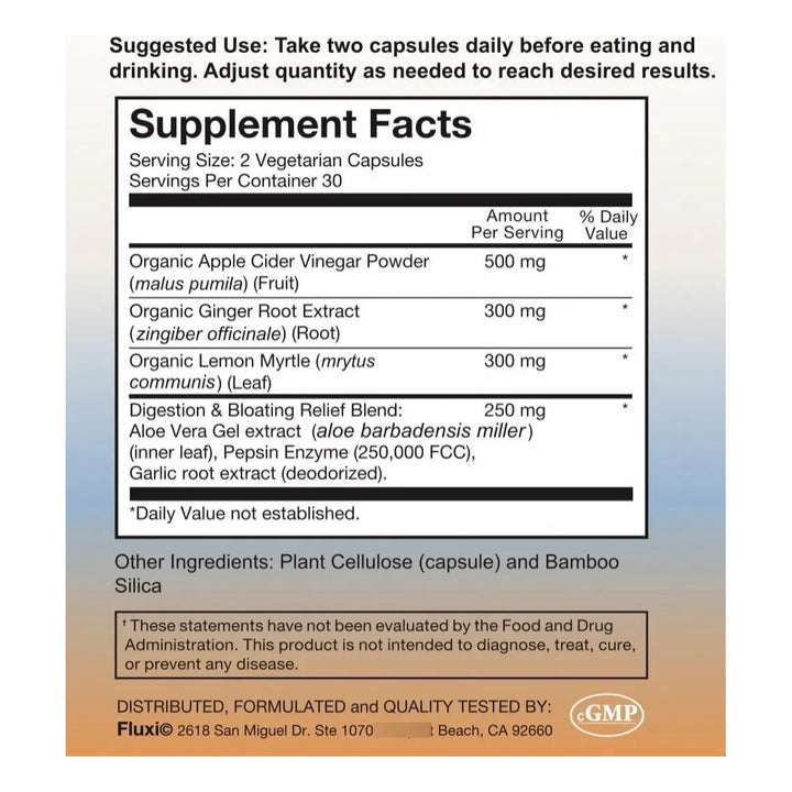 Nuestras cápsulas actúan directamente en el sistema digestivo, equilibrando los niveles de acidez gracias al vinagre de sidra de manzana. El jengibre reduce la inflamación y el mirto de limón ayuda a calmar el estómago. Juntos, estos ingredientes crean un entorno digestivo óptimo, previniendo el reflujo y la hinchazón.