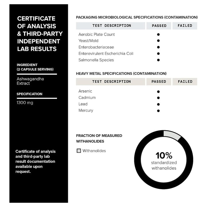 Nuestro extracto de ultra alta potencia, cosechado silvestre en la India, está formulado para brindarte los niveles más altos de withanólidos, el compuesto activo responsable de los increíbles beneficios de la ashwagandha. Con un 10% de concentración, supera ampliamente a otros productos del mercado que apenas alcanzan el 2.5%.