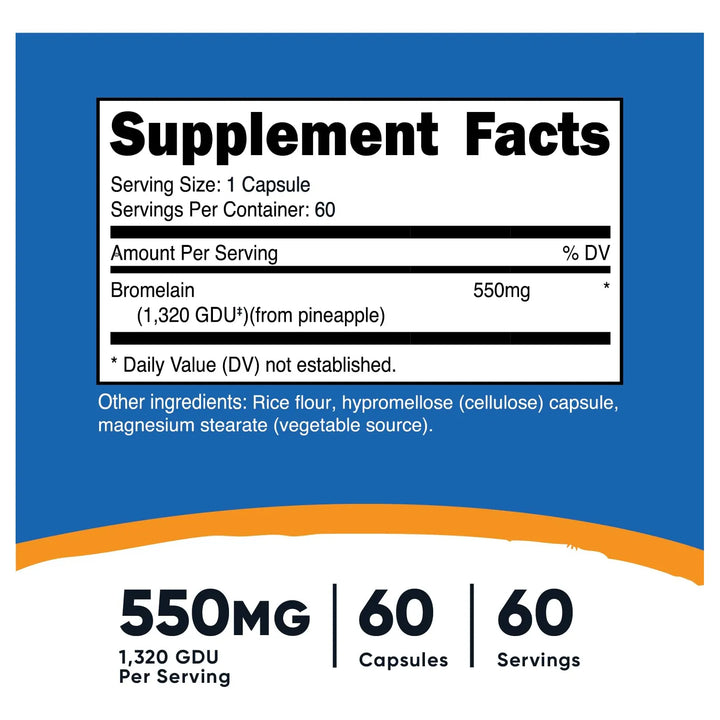 La bromelina es una enzima proteolítica que ayuda a descomponer las proteínas en el cuerpo, facilitando su absorción y reduciendo la inflamación. Al tomar nuestras cápsulas diariamente, apoyas la digestión, promueves la recuperación muscular y fortaleces tu sistema inmunológico. Es como darle a tu cuerpo las herramientas que necesita para funcionar de manera óptima, sin esfuerzo.