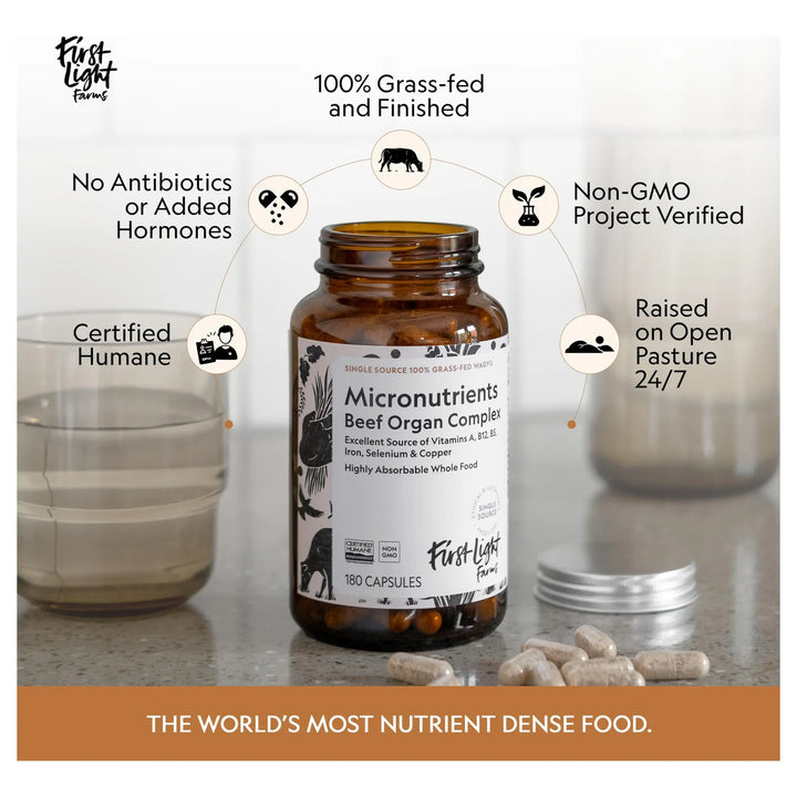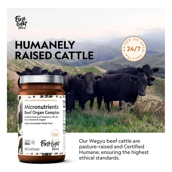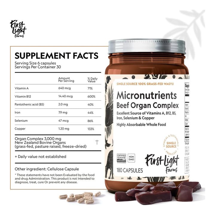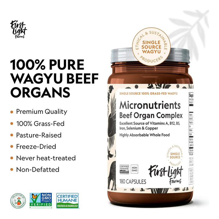 Imagina tener acceso a los nutrientes más puros y poderosos de la naturaleza, sin sacrificar tiempo ni calidad. Nuestras cápsulas de carne de res Wagyu liofilizada alimentada con pasto son tu puerta de entrada a una salud vibrante y energía inagotable. Cada cápsula está cargada con 500 mg de órganos premium (hígado, corazón, riñón y bazo), cuidadosamente seleccionados para ofrecerte lo mejor de la nutrición ancestral.