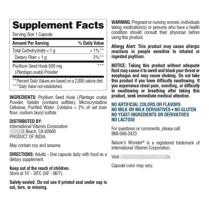 - 500 mg de cáscara de psyllium pura por cápsula, la dosis perfecta para tu día a día. 🌟