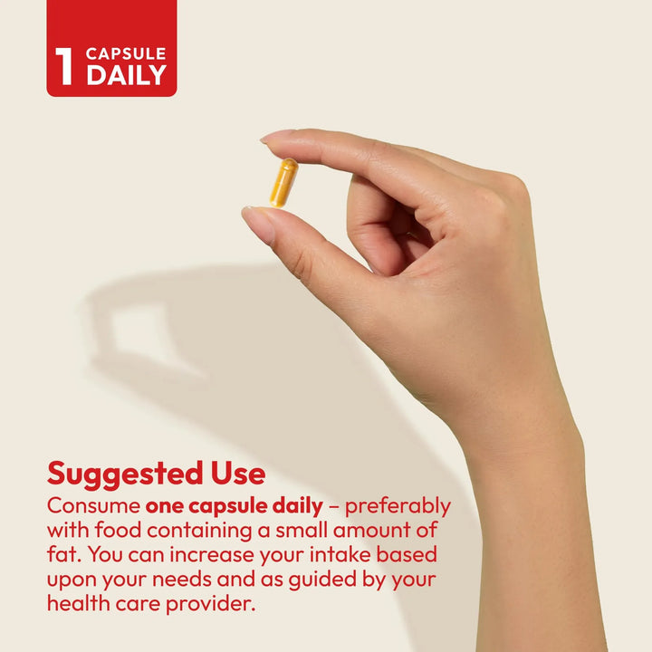 - Tomar 1 cápsula al día preferiblemente con las comidas.