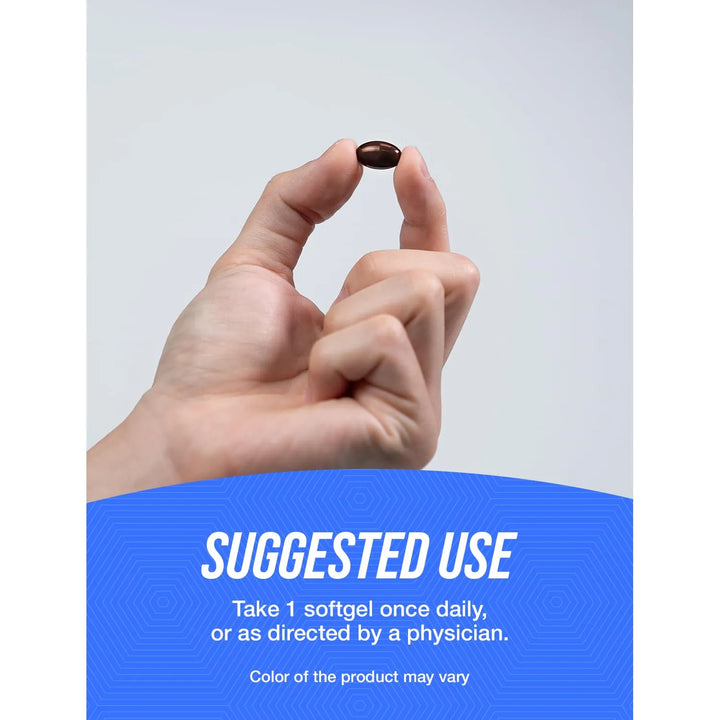 - Toma 1 cápsula blanda al día, preferiblemente con una comida.