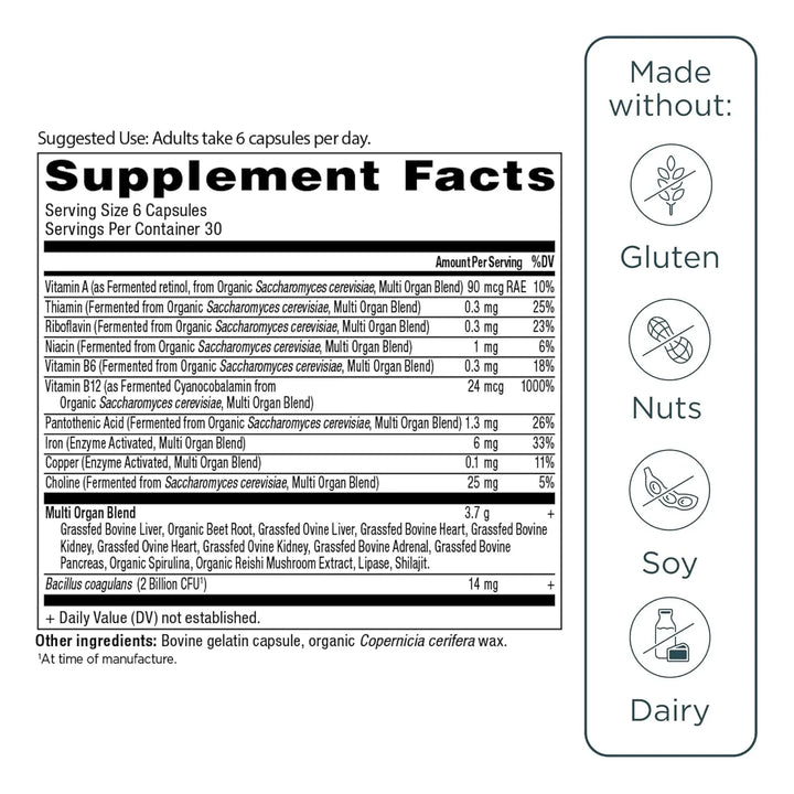 Imagina despertar cada día con una energía renovada, una mente clara y la tranquilidad de saber que tu salud está protegida. Este suplemento único, formulado con órganos bovinos alimentados con pasto de Argentina y órganos de cordero silvestre de Islandia, te ofrece una combinación poderosa de vitaminas, minerales y aminoácidos que tu cuerpo reconoce y absorbe fácilmente. No es solo un suplemento, es un regalo para tu bienestar.
