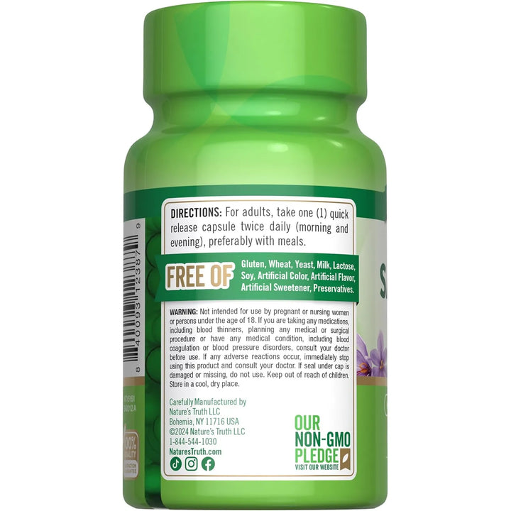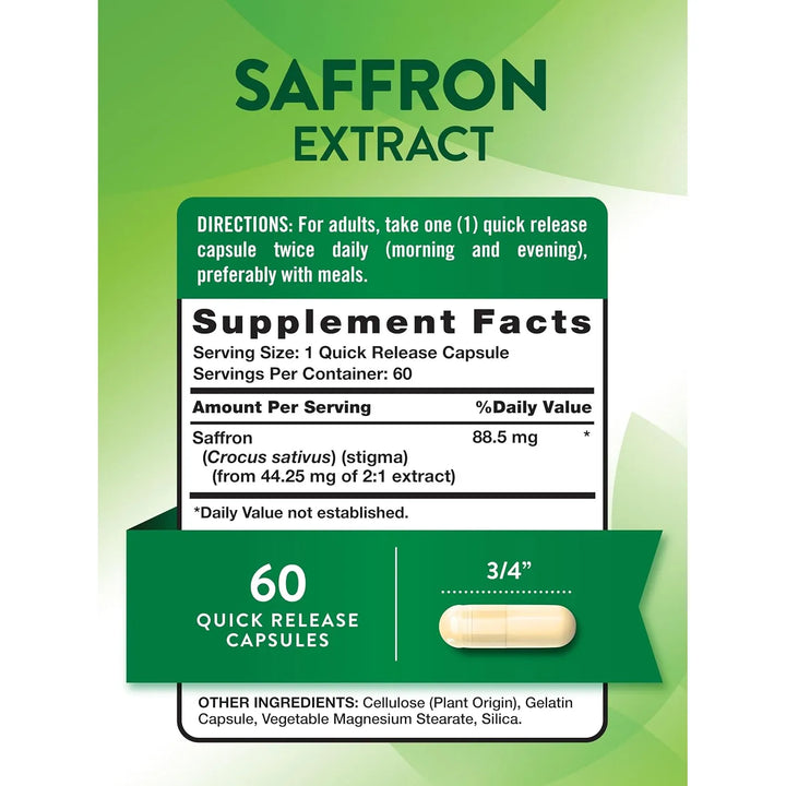 - 💊 Fórmula concentrada de liberación rápida: Equivalente a 88.5 mg de extracto de azafrán por cápsula para una absorción óptima.