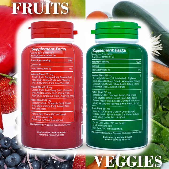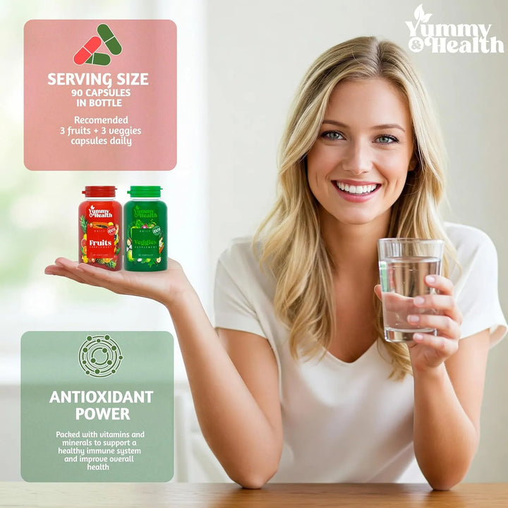 ¿Sientes que no consumes suficientes frutas y verduras en tu día a día? ¿Te falta energía, tienes problemas para dormir o tu sistema inmunológico necesita un refuerzo? Imagina obtener todos los nutrientes de más de 33 frutas y verduras orgánicas en una sola cápsula, sin tener que preocuparte por preparar batidos o llevar contigo kilos de productos frescos. Nuestras cápsulas de frutas y verduras con superalimentos son la solución perfecta para una vida saludable y sin complicaciones.