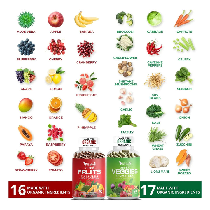 - 🌿 Nutrición Completa En Un Solo Paso: Olvídate de comprar múltiples suplementos. Estas cápsulas combinan lo mejor de frutas y verduras en una fórmula poderosa.