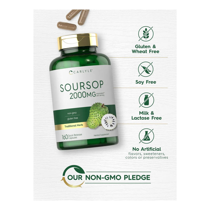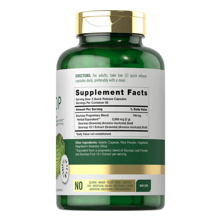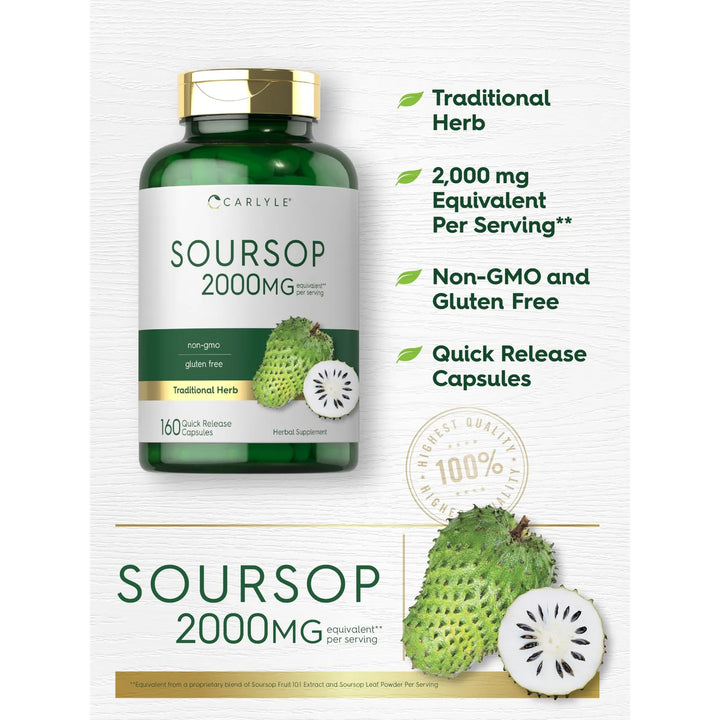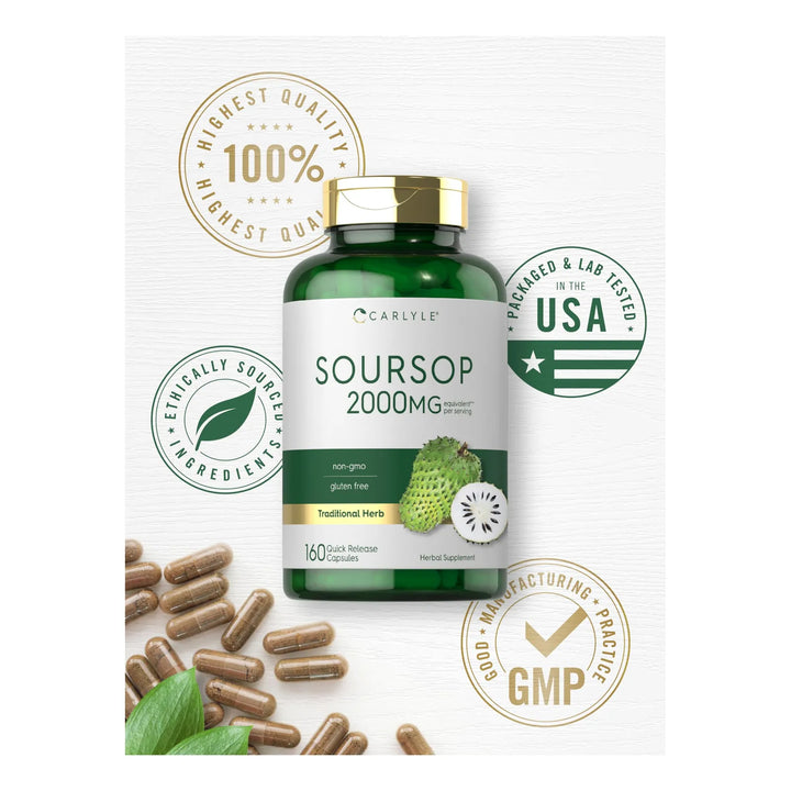 Imagina tener acceso a los beneficios de una de las plantas más poderosas de la naturaleza, sin complicaciones y en la comodidad de tu hogar. Nuestras cápsulas de hojas de guanábana 2000 mg son tu aliado perfecto para una vida más saludable y equilibrada. Con 160 cápsulas de liberación rápida, cada dosis está diseñada para brindarte lo mejor de esta hierba tradicional, originaria de las tierras tropicales de Centroamérica y el Caribe.