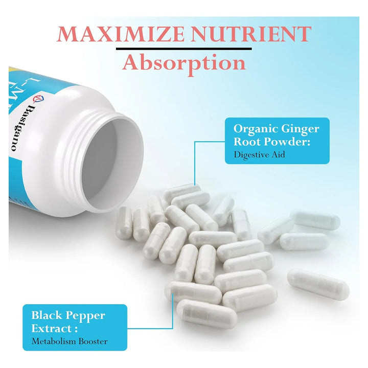 Cada cápsula vegetariana contiene ingredientes cuidadosamente seleccionados para maximizar su efectividad. El extracto de pimienta negra (piperina) aumenta la absorción hasta en un 30%, mientras que las cápsulas de fácil digestión aseguran que ningún nutriente se desperdicie.