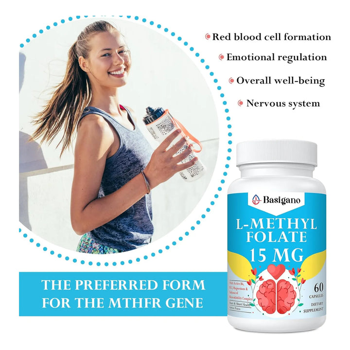 Nuestras cápsulas de L-Metilfolato 15 mg con vitaminas B6 y B12 son tu aliado perfecto para recuperar ese equilibrio que tu cuerpo necesita. No es un simple suplemento, es la forma biológicamente activa que tu organismo puede utilizar inmediatamente, sin procesos de conversión complicados.