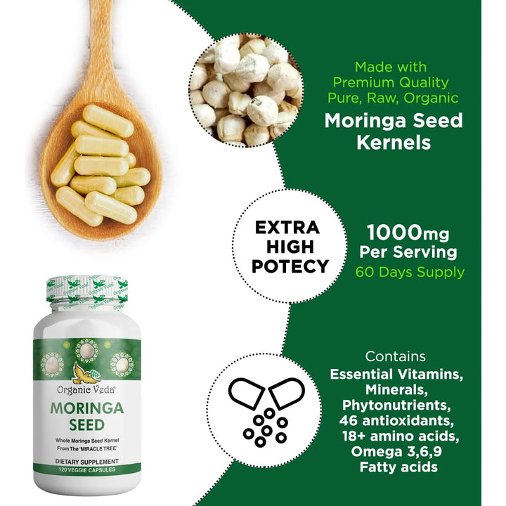 ¿Sientes que tu energía no es la misma de antes? ¿Te cuesta mantener una digestión saludable o una piel radiante? Las cápsulas de Moringa Orgánica 1000 mg son tu solución natural. Este superalimento, conocido como "El Árbol Milagroso", está repleto de nutrientes esenciales que tu cuerpo necesita para funcionar al máximo. Imagina despertar cada día con vitalidad, sintiendo cómo tu cuerpo se revitaliza desde adentro hacia afuera. Eso es lo que la Moringa puede hacer por ti.