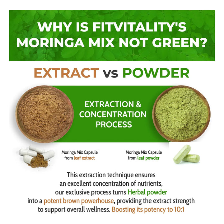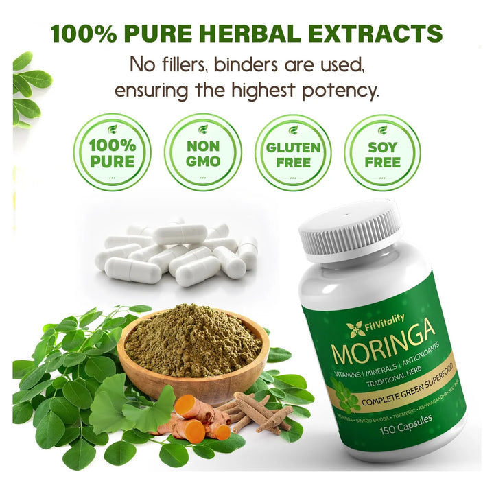 Nuestras cápsulas actúan desde la primera dosis, liberando los nutrientes esenciales de la Moringa y sus ingredientes complementarios. El extracto 10:1 asegura una absorción rápida y eficaz, mientras que el Ginkgo Biloba y la Ashwagandha trabajan sinérgicamente para equilibrar tu energía y reducir el estrés. Es como darle a tu cuerpo un impulso natural desde dentro.
