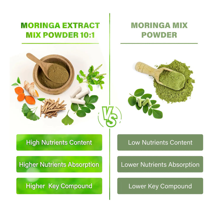 ¿Sientes que el estrés y la falta de energía te impiden disfrutar al máximo? La Moringa Oleifera, conocida como el "árbol de la vida", combinada con estos poderosos botánicos, te ofrece un apoyo natural para mantener tu mente clara y tu cuerpo en armonía. Cada cápsula contiene un extracto 10:1, equivalente a 6000 mg por porción, garantizando que recibas la máxima potencia en cada dosis.