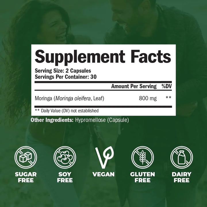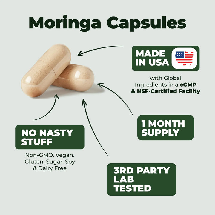 - 800 mg de Moringa Oleifera pura por cápsula para máxima potencia 💊