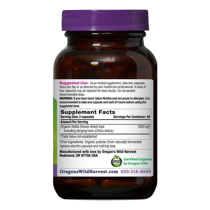 Imagina aliviar tus alergias de manera natural, sin químicos agresivos ni efectos secundarios. Las cápsulas de ortiga orgánica con pelos urticantes de Oregon's Wild Harvest son tu solución. 🌿 Cada cápsula contiene 600 mg de ortiga liofilizada, cosechada en su punto máximo de potencia para ofrecerte el mejor apoyo nutricional.
