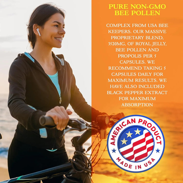 Imagina empezar cada día con un impulso de energía natural, fortaleciendo tu sistema inmunológico y nutriendo tu cuerpo con los mejores ingredientes que la naturaleza puede ofrecer. Nuestras cápsulas de polen de abeja, enriquecidas con jalea real y propóleo, son tu aliado perfecto para un bienestar integral. Cada cápsula está diseñada para brindarte 3520 mg de pura potencia, combinando los beneficios únicos de estos superalimentos en una fórmula fácil de tomar.