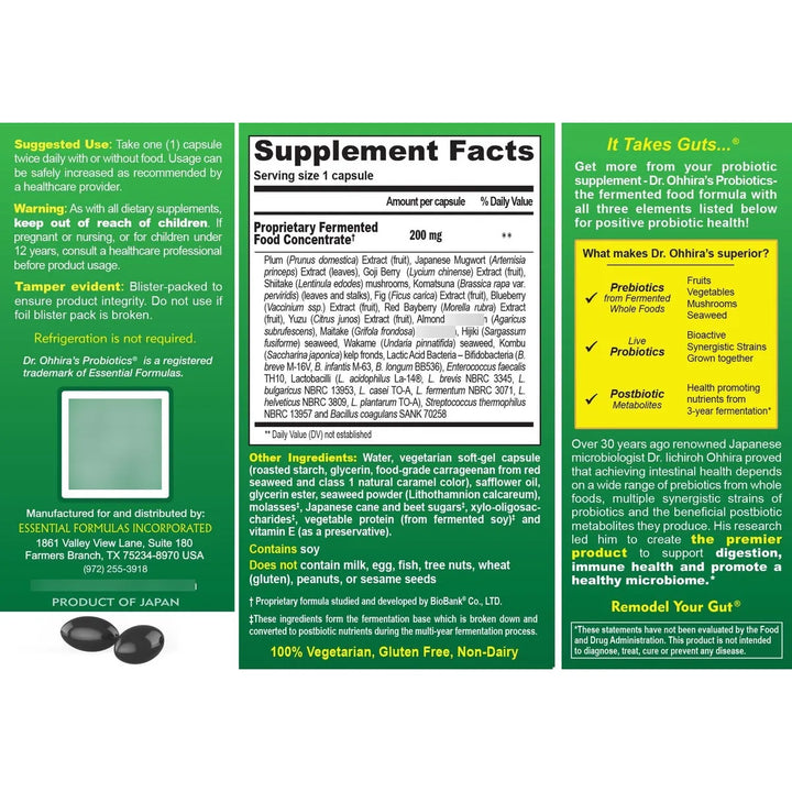 Lo que hace único a este probiótico es su proceso de fermentación de tres años, que no solo incluye cepas vivas, sino también prebióticos y postbióticos esenciales para un microbioma equilibrado. A diferencia de otras marcas que liofilizan sus productos, comprometiendo la eficacia, el Dr. Ohhira preserva la vitalidad de cada cepa en cápsulas vegetarianas fáciles de tragar. ¿Y lo mejor? Puedes incluso saborear los ingredientes naturales como higos y ciruelas si decides masticarlas. Es probiótico, es alimento, es bienestar en cada cápsula.