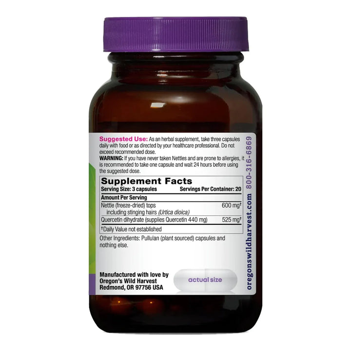 ¿Te preocupa la calidad de lo que consumes? Estas cápsulas están libres de gluten, lácteos y alérgenos de soja, y han sido verificadas como libres de OMG por un laboratorio independiente. Cada cápsula contiene ortiga cosechada en su punto máximo de nutrientes y liofilizada para conservar sus propiedades. No es solo un producto, es una elección consciente para tu cuerpo.