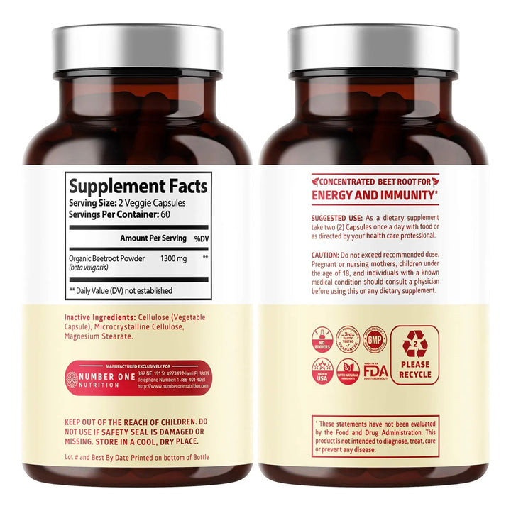 - 1300 mg de Pura Raíz de Remolacha Orgánica: Máxima potencia en cada dosis. 💪