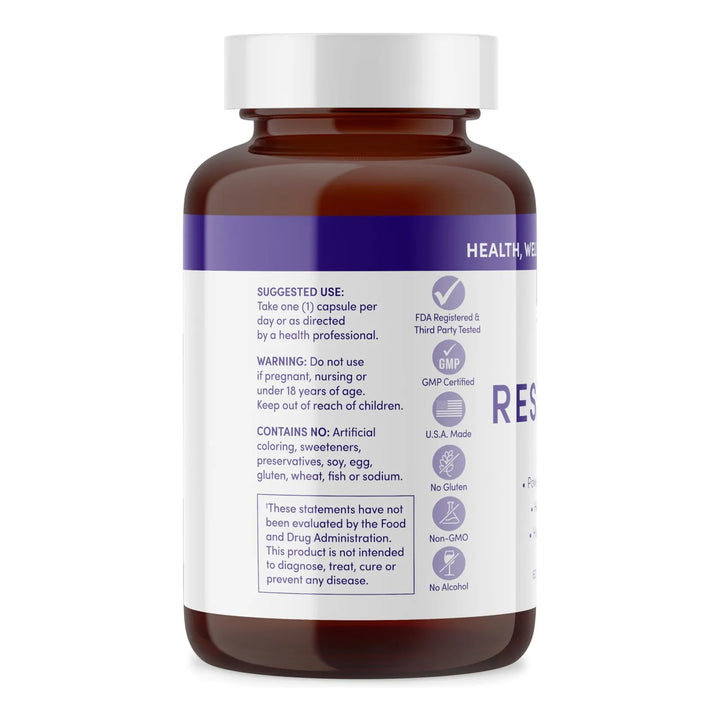 Vivimos en un mundo donde el estrés, la contaminación y los malos hábitos afectan nuestra salud cada día. Pero no tienes que resignarte a sus efectos. Con las cápsulas de Resveratrol, estás dando un paso hacia una vida más saludable y llena de energía. Cada cápsula está formulada con ingredientes puros, sin OMG, gluten, lácteos o soja, para que puedas disfrutar de sus beneficios sin preocupaciones. Además, al estar fabricado en Estados Unidos y registrado por la FDA, tienes la garantía de un producto de la más alta calidad.