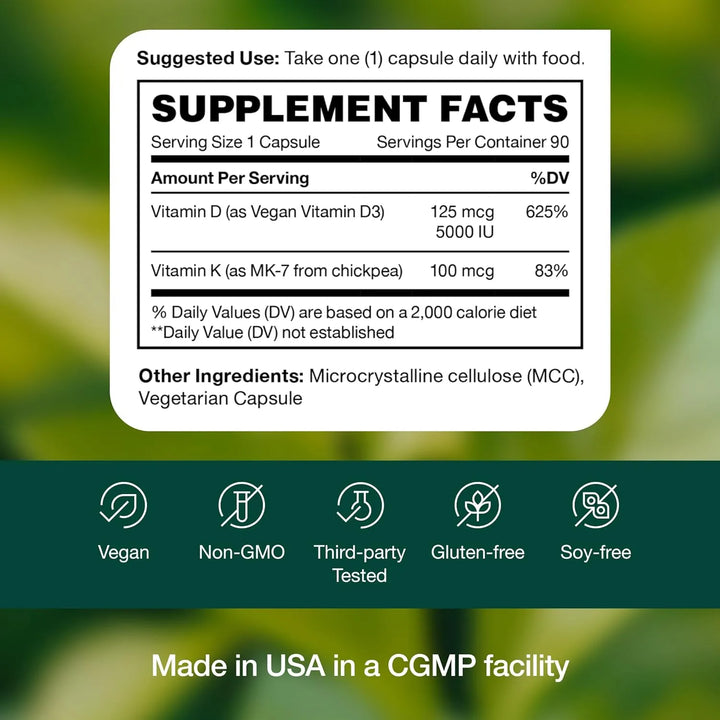 - Dosis Clínicamente Efectivas: 5000 UI de D3 y 100 mcg de K2 cumplen con las recomendaciones para adultos con deficiencia. 📊
