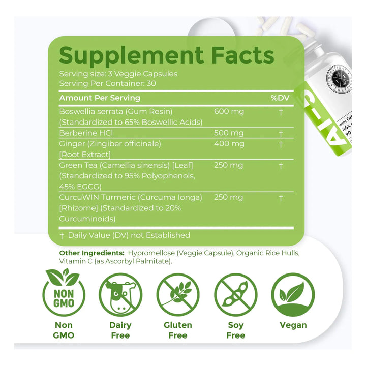 - Fórmula con 5 ingredientes estrella: cúrcuma, boswellia, jengibre, té verde y berberina 🌟