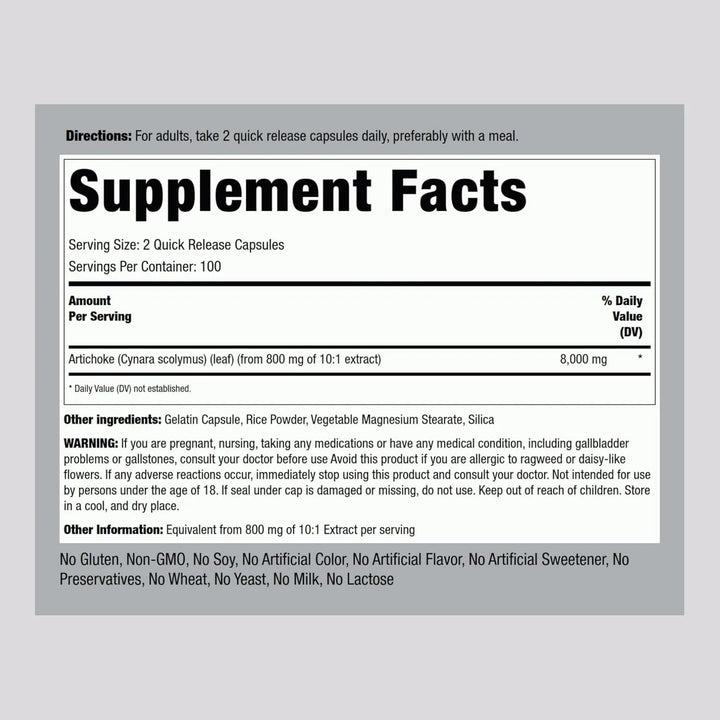 Extracto concentrado potente: Cada cápsula contiene 8000 mg de pura alcachofa para una acción efectiva 😊.