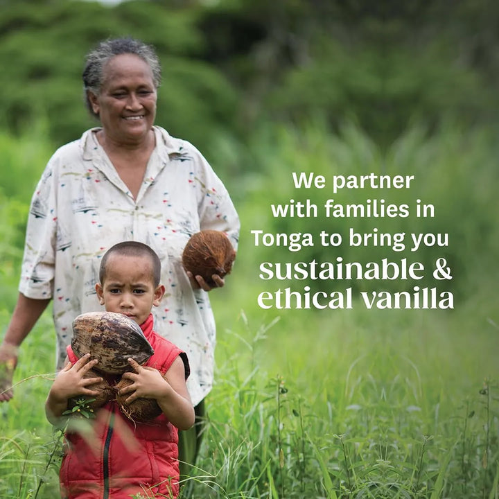 ¿Cansado de extractos artificiales que pierden su sabor al hornear? Nuestro producto está hecho con granos de vainilla pura y una mezcla exclusiva de canela, nuez moscada y jengibre, garantizando un sabor intenso y natural en cada uso. Además, al elegirnos, apoyas a comunidades agrícolas en Tonga, haciendo de cada compra un acto de consumo responsable.