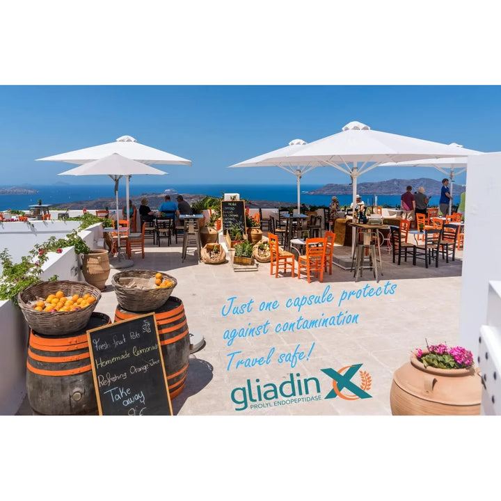 Ya sea que viajes, comas en restaurantes o simplemente quieres esa capa adicional de seguridad, GliadinX se convierte en tu compañero esencial. Cada cápsula es un paso hacia la tranquilidad, respaldada por certificaciones kosher y fabricación en instalaciones GMP que garantizan la máxima calidad en cada dosis.