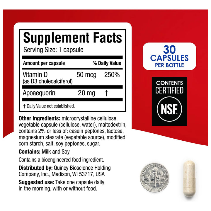 Imagina despertar cada mañana con la mente fresca, lista para absorber información nueva y recordar todo lo que necesitas sin esfuerzo. Nuestro suplemento de 20 mg, formulado con Aequorina y vitamina D, está diseñado específicamente para apoyar tu salud cerebral. En un estudio clínico doble ciego, participantes con capacidades cognitivas normales o ligeramente deterioradas mostraron mejoras significativas después de solo 90 días de uso diario.