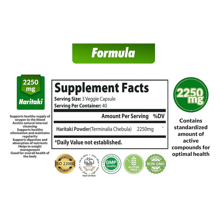 - Alta Concentración: 2250 MG de Haritaki puro por cápsula para resultados visibles. 🌟
